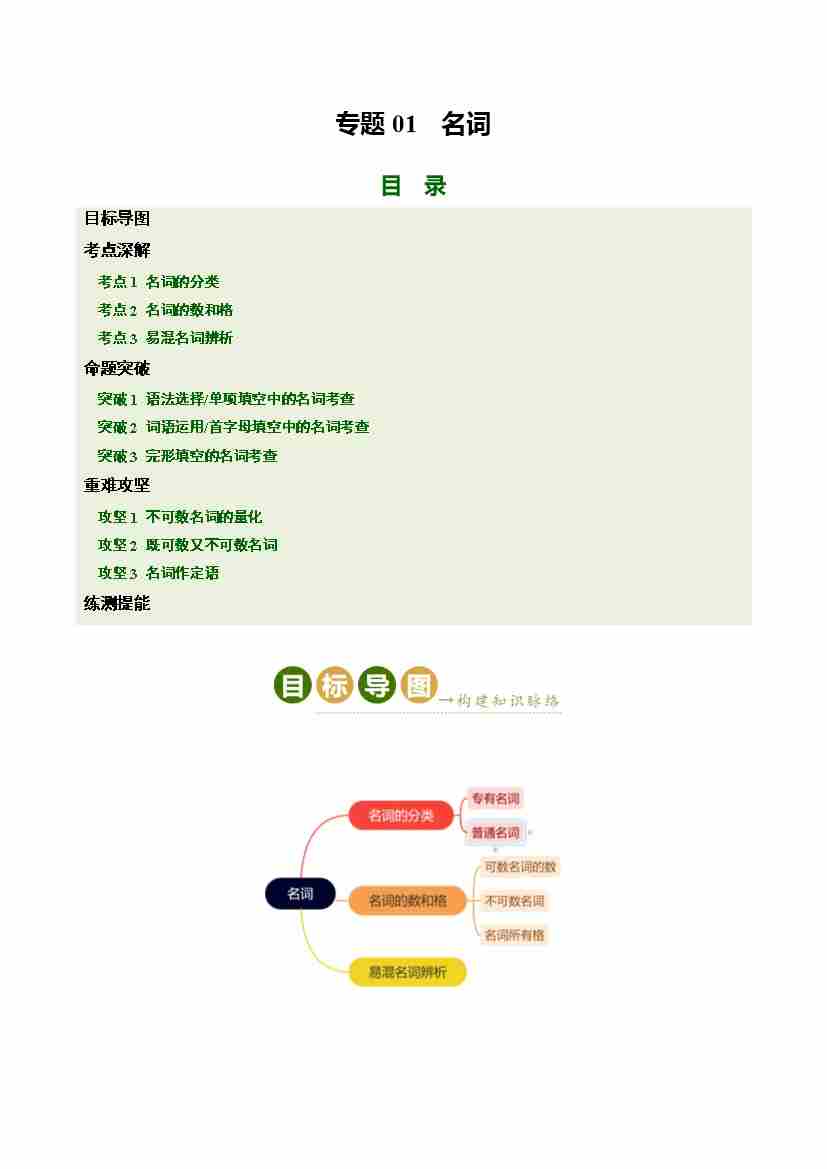 Part 1 核心语法精讲专题01 名词(培优讲义)(全国通用)(解析版)