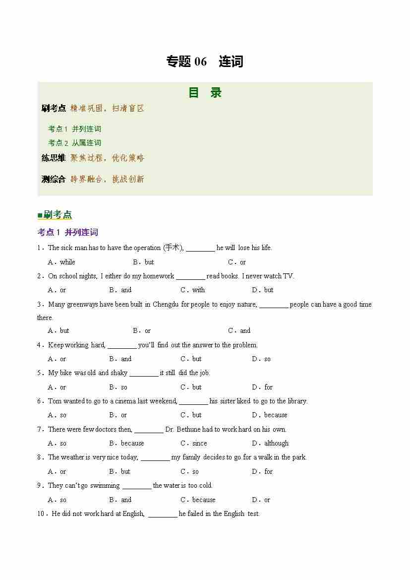 Part 1 核心语法精讲专题06 连词(培优专练)(全国通用)(原卷版)