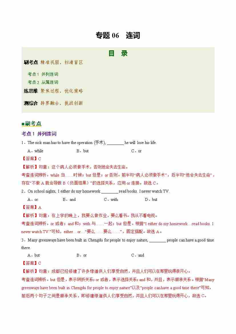 Part 1 核心语法精讲专题06 连词(培优专练)(全国通用)(解析版)