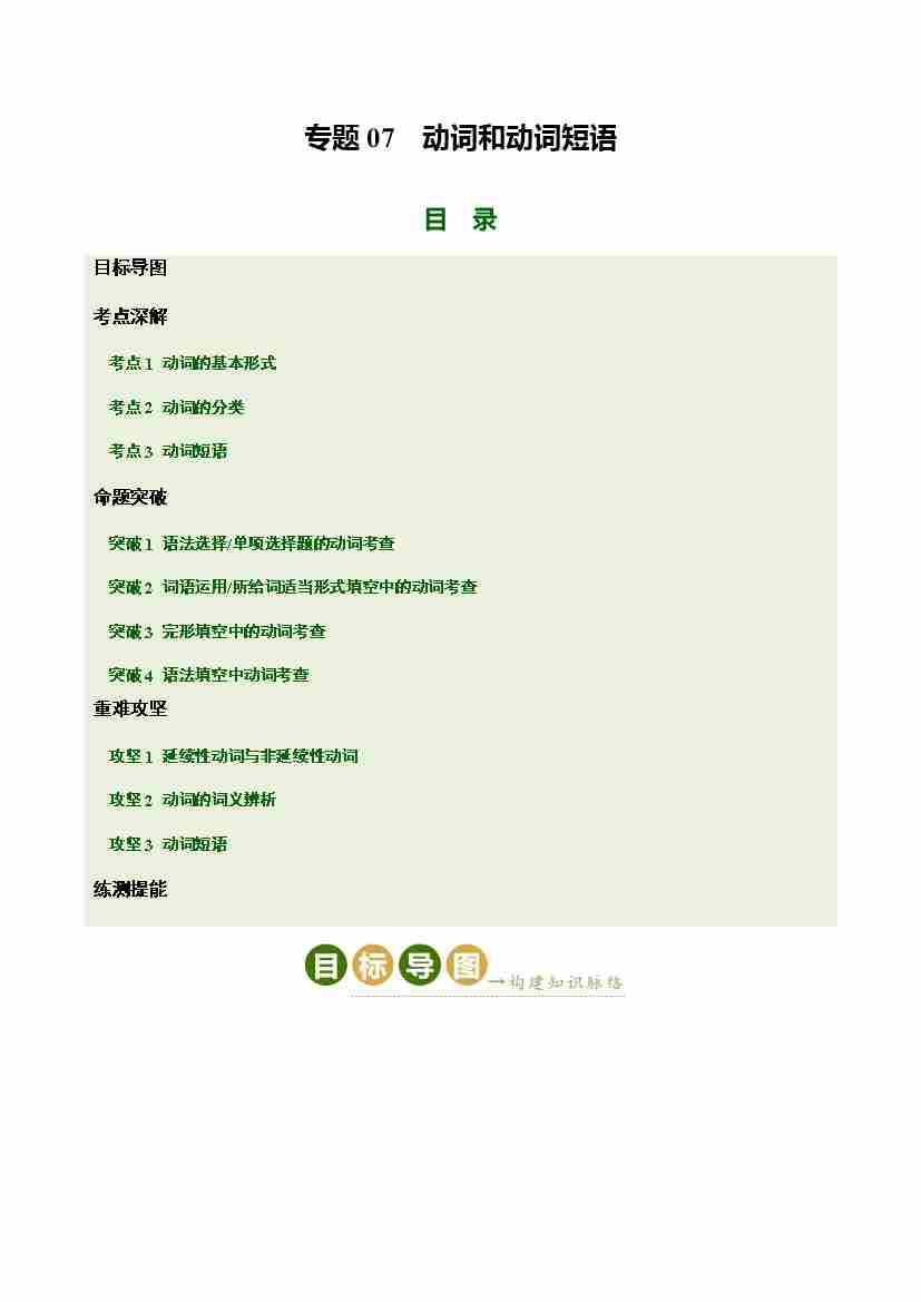 Part 1 核心语法精讲专题07 动词和动词短语(培优讲义)(全国通用)(原卷版)