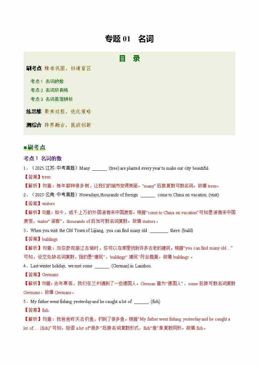 Part 1 核心语法精讲专题01 名词(培优专练)(全国通用)(解析版)