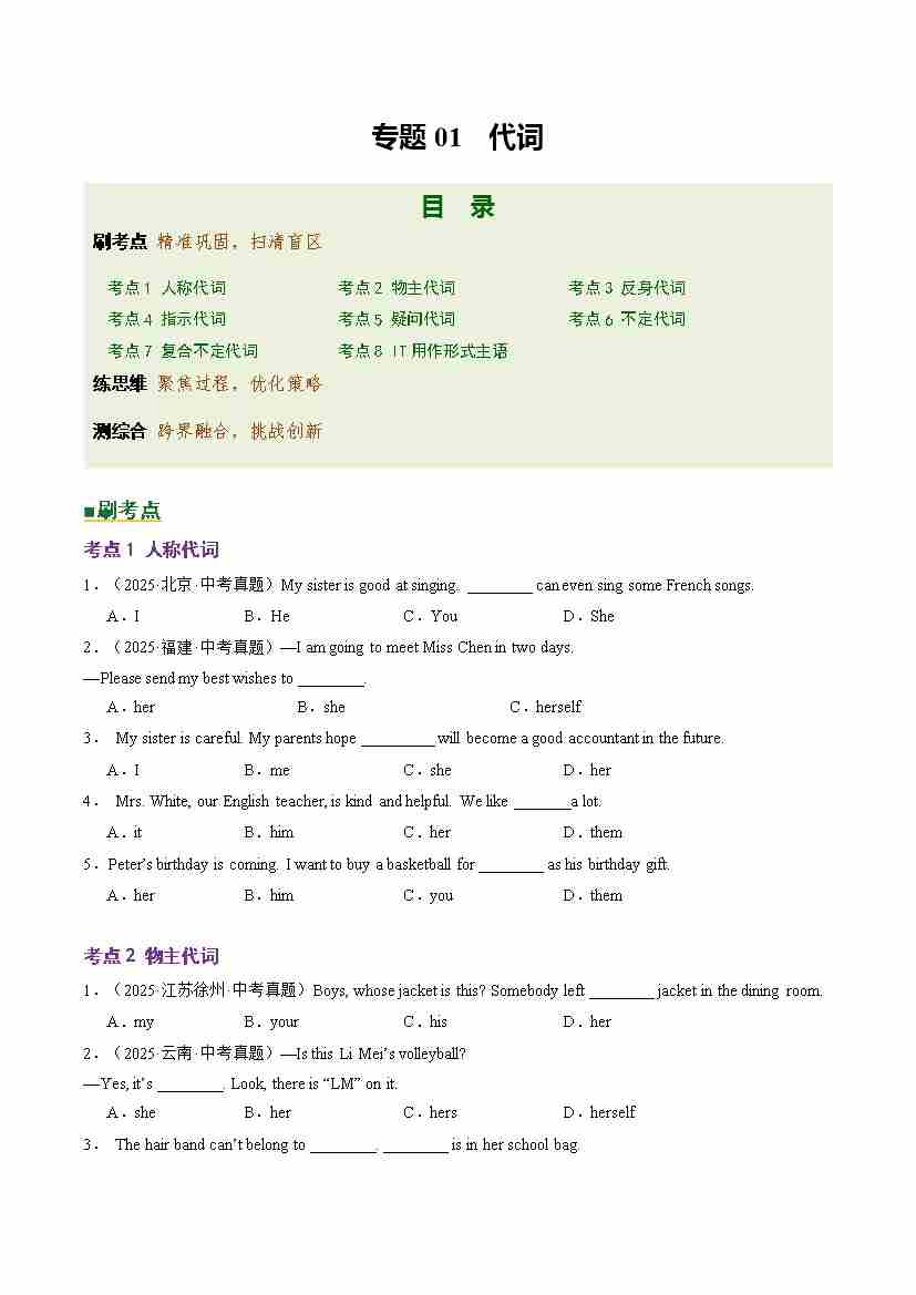 Part 1 核心语法精讲专题02 代词(培优专练)(全国通用)(原卷版)