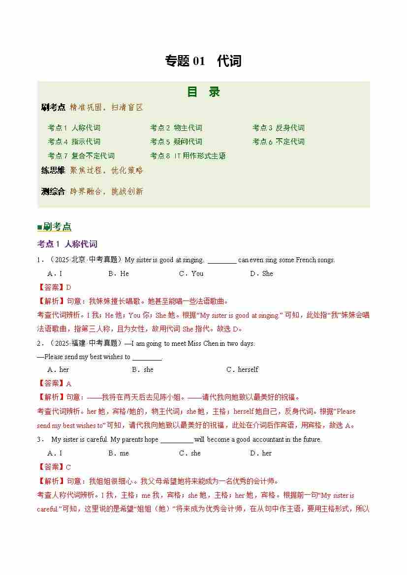 Part 1 核心语法精讲专题02 代词(培优专练)(全国通用)(解析版)