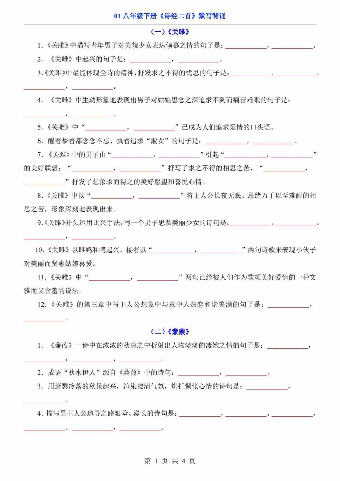 八年级(下)语文01《诗经》二首默写背诵