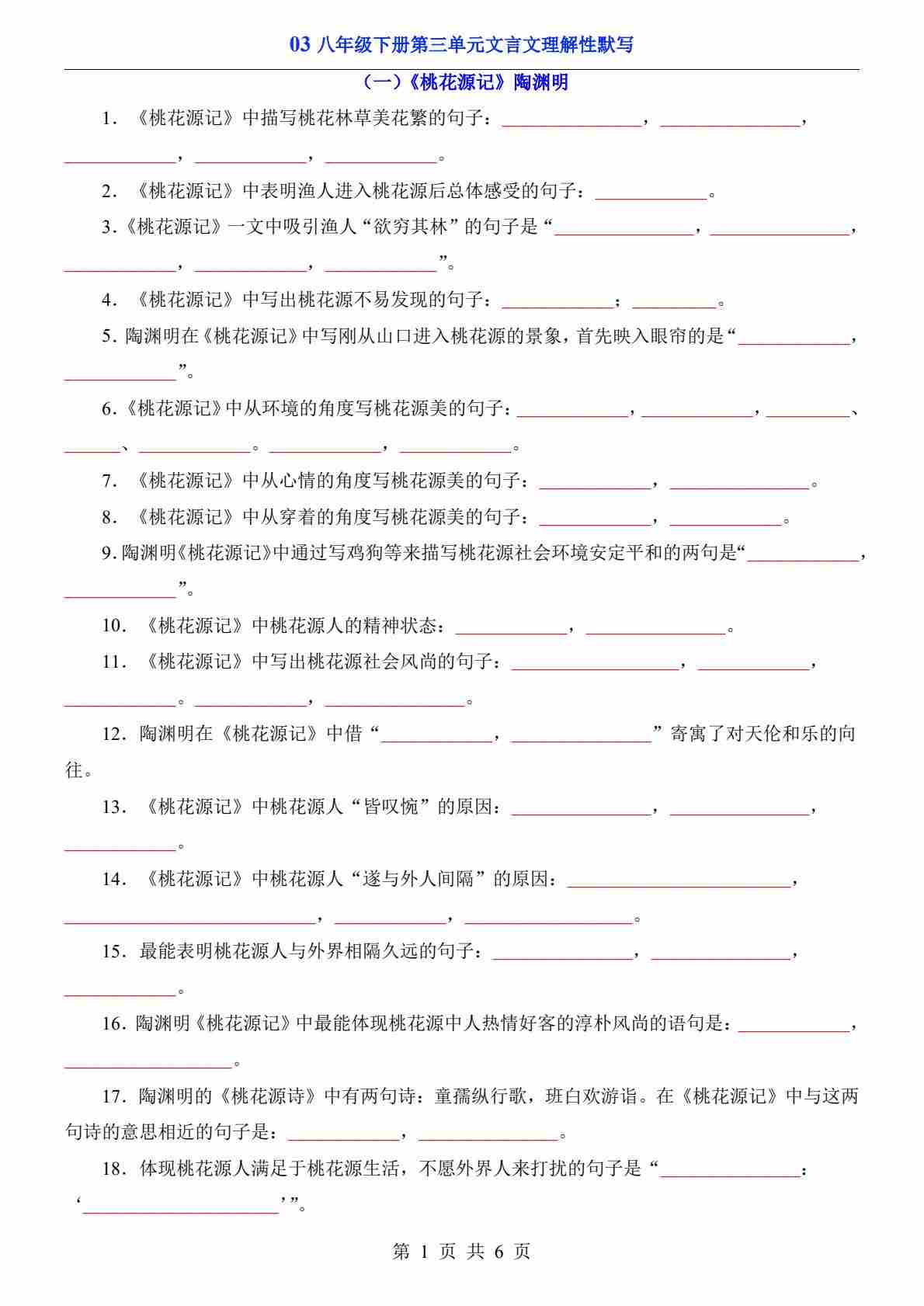 八年级(下)语文03 第三单元文言文默写背诵