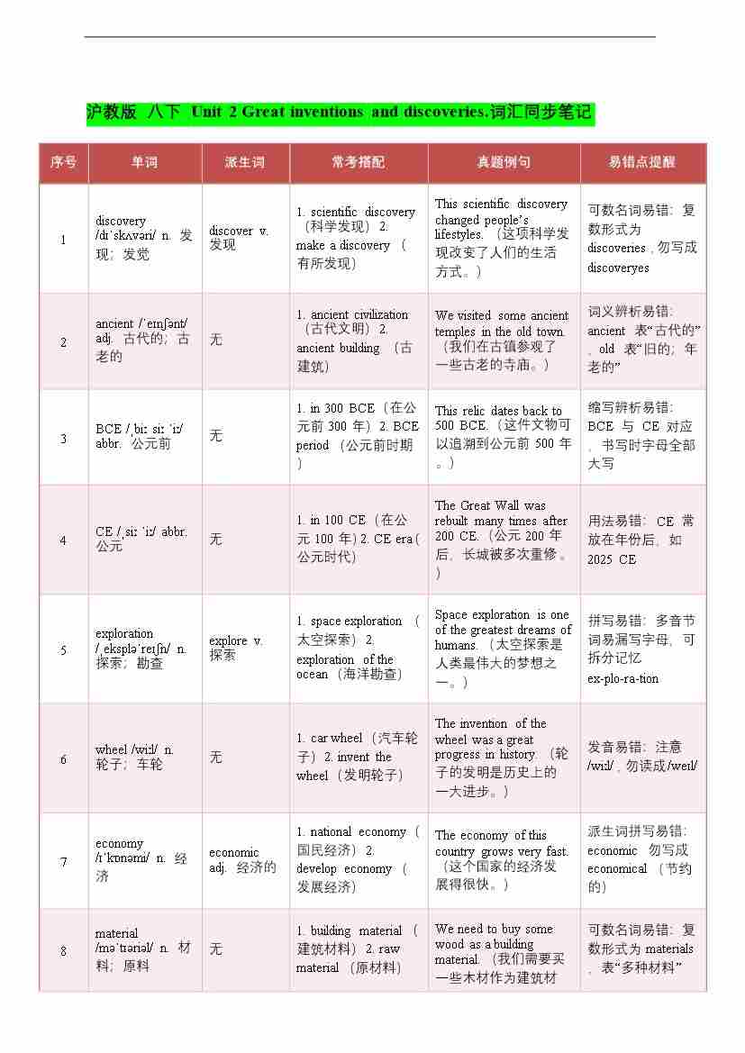 2026年春沪教版(五四学制)八下 Unit 2 Great inventions and discoveries.词汇同步笔记(学案)
