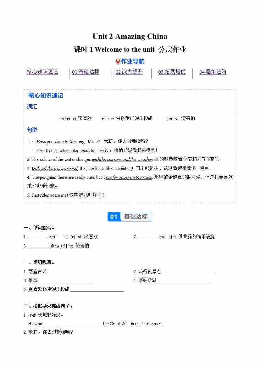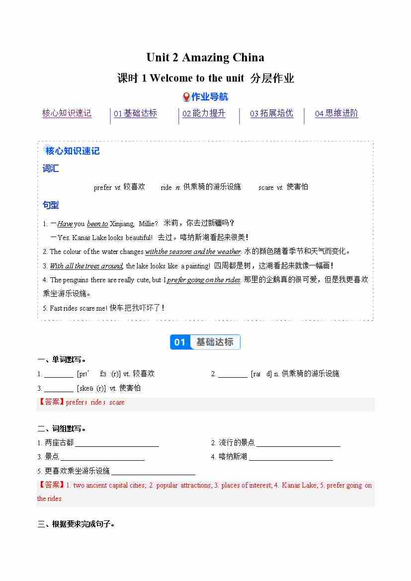 Unit 2 课时1 Welcome to the unit(分层作业)(解析版)八下译林