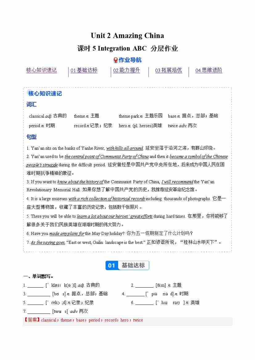 Unit 2 课时5 Integration ABC(分层作业)(解析版)八下译林