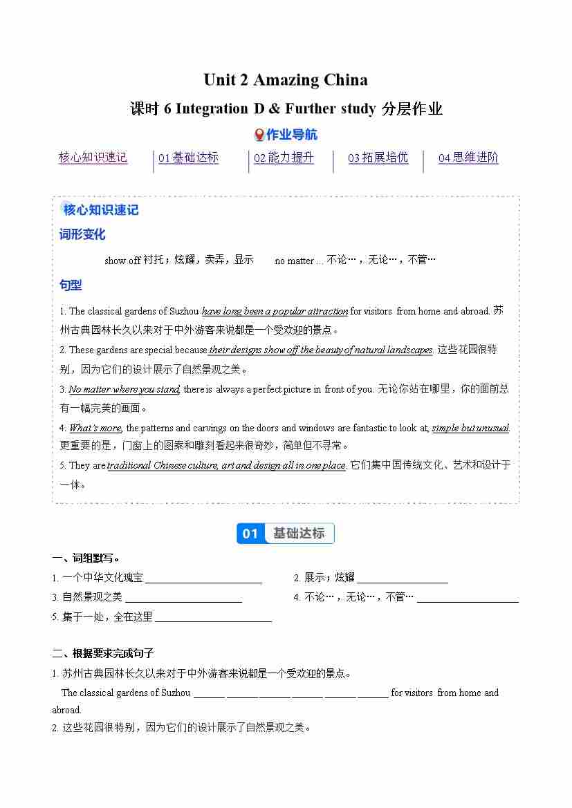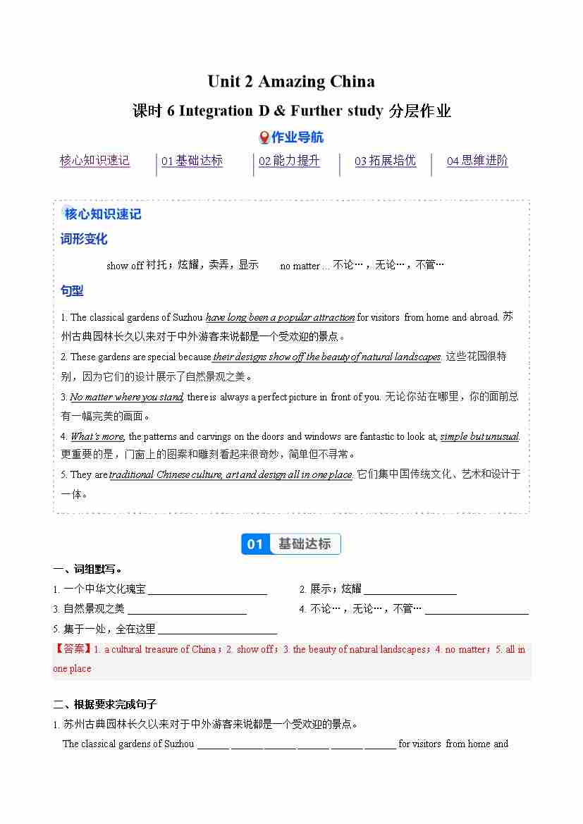 Unit 2 课时6 Integration D & Further study(分层作业)(解析版)八下译林