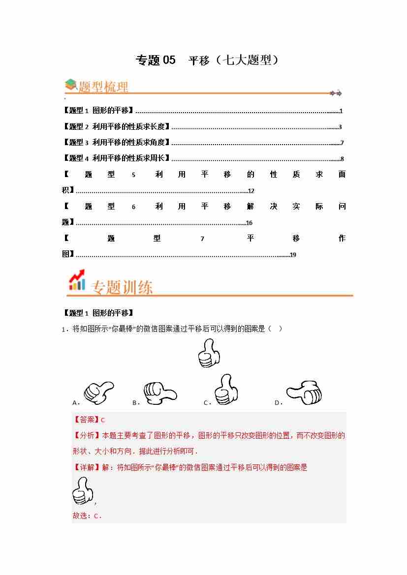 专题05 平移(七大题型)(题型训练易错精练)(解析版)