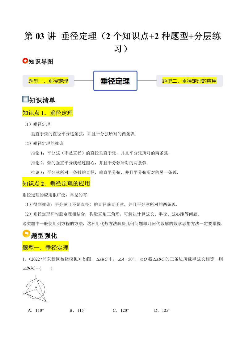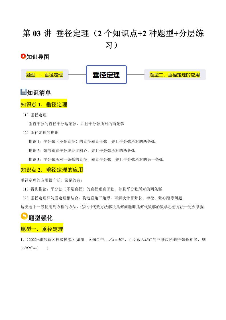 第03讲 垂径定理(2个知识点2种题型分层练习)(学生版)