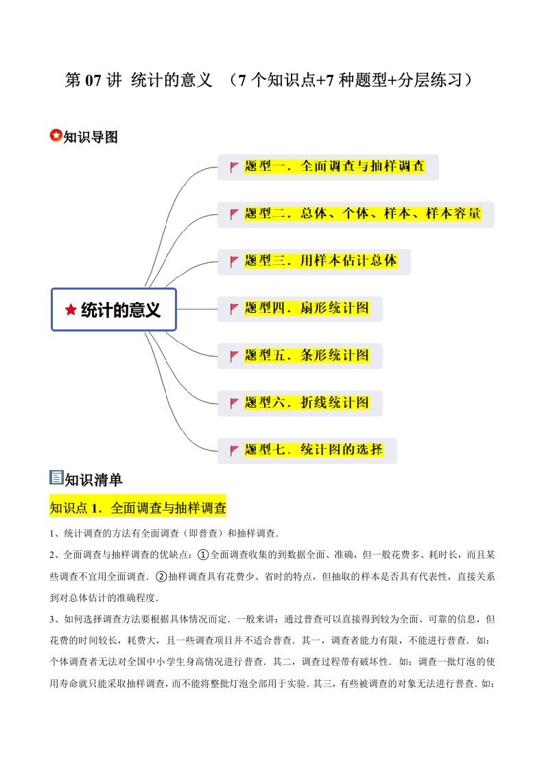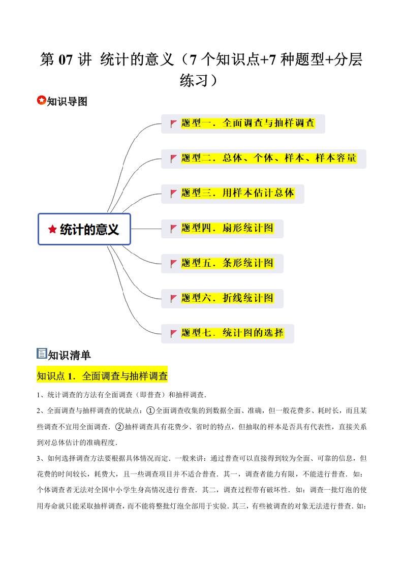 第07讲 统计的意义 (7个知识点7种题型分层练习)(学生版)