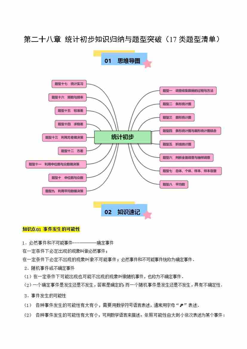 第二十八章 统计初步知识归纳与题型突破(17类题型清单)(原卷版)