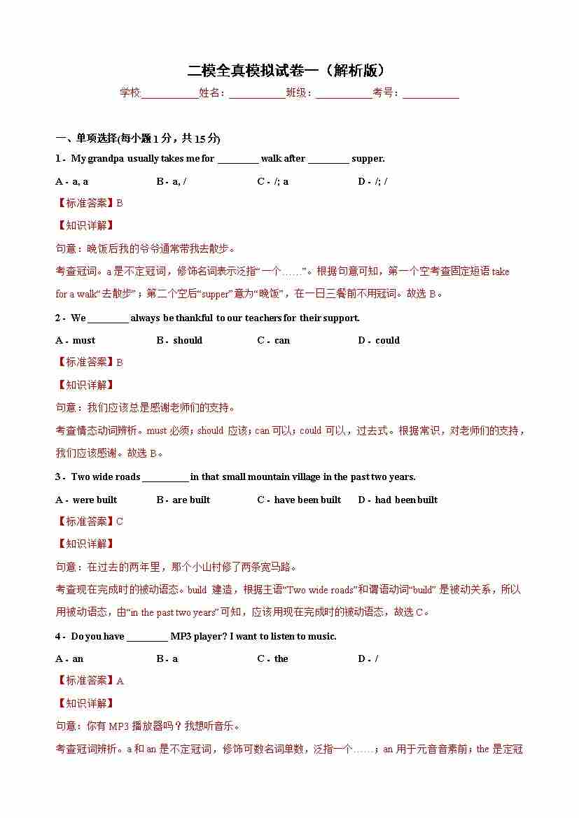 二模全真模拟试卷01(解析版)-【寒假自学课】九年级英语寒假精品课(二模)(牛津上海版)