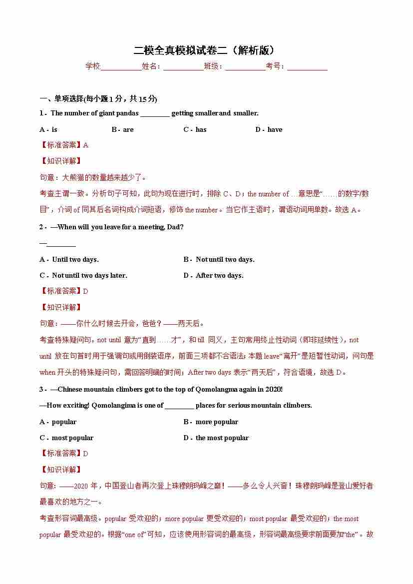 二模全真模拟试卷02(解析版)-【寒假自学课】九年级英语寒假精品课(二模)(牛津上海版)