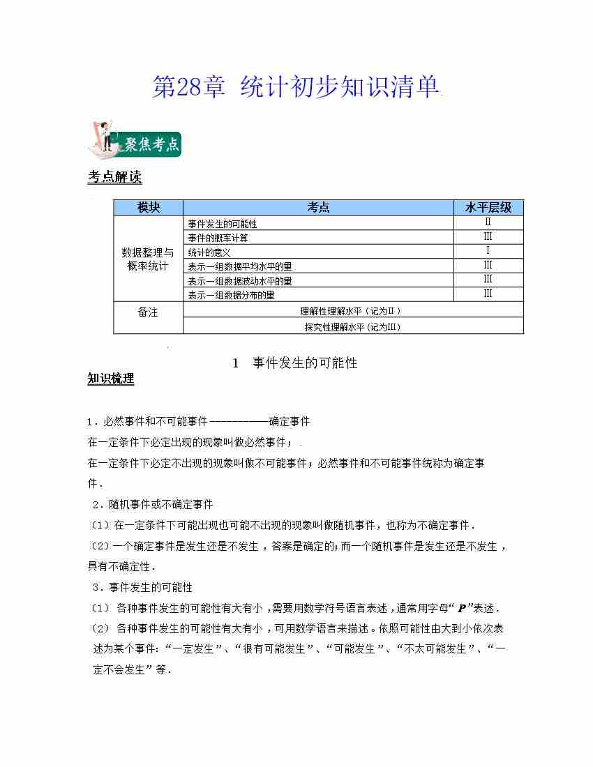 第28章 统计初步(知识清单)(沪教版)