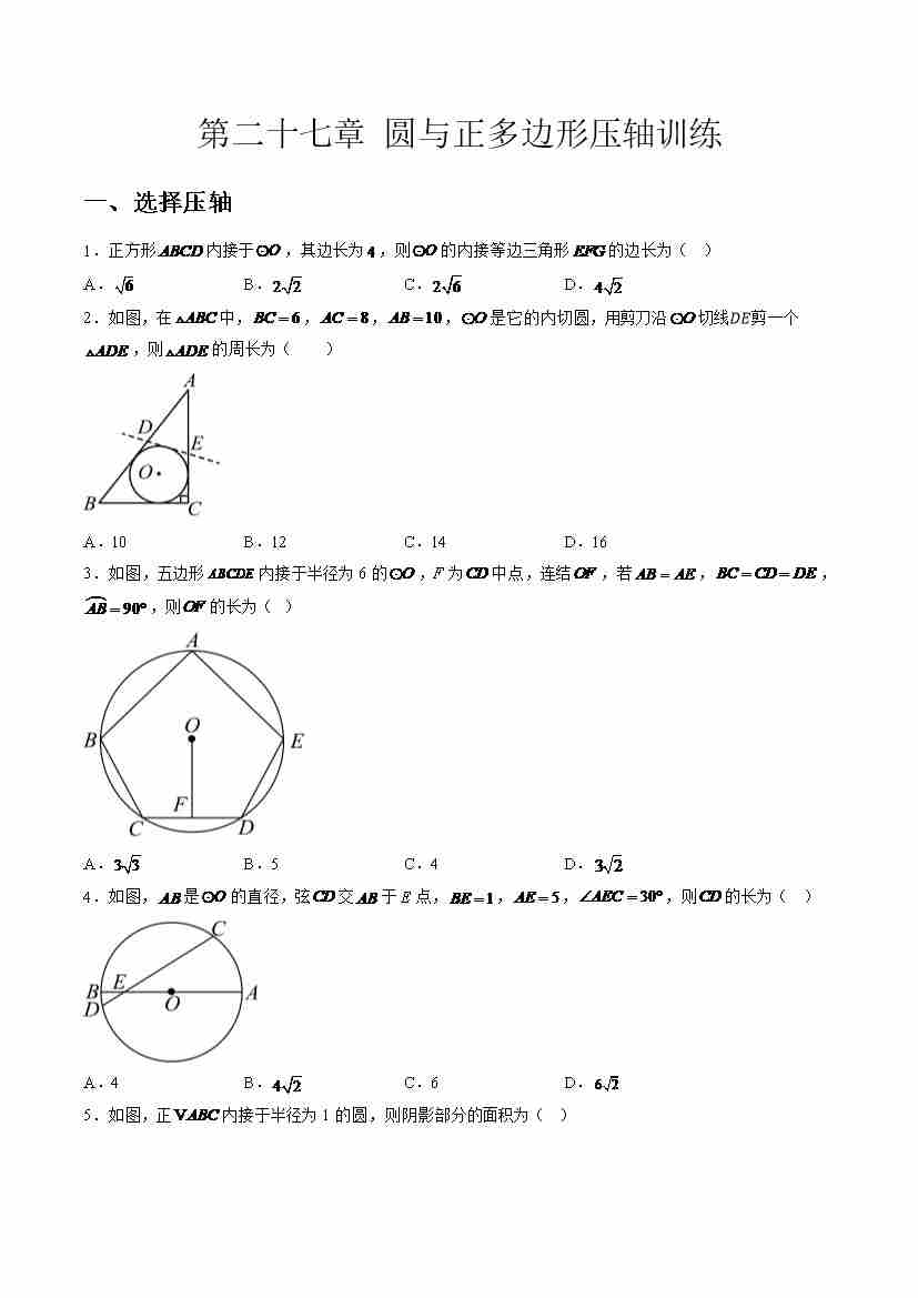 第二十七章 圆与正多边形压轴训练(学生版)
