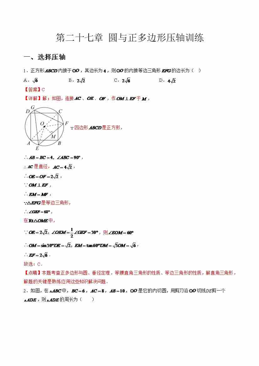 第二十七章 圆与正多边形压轴训练(教师版)