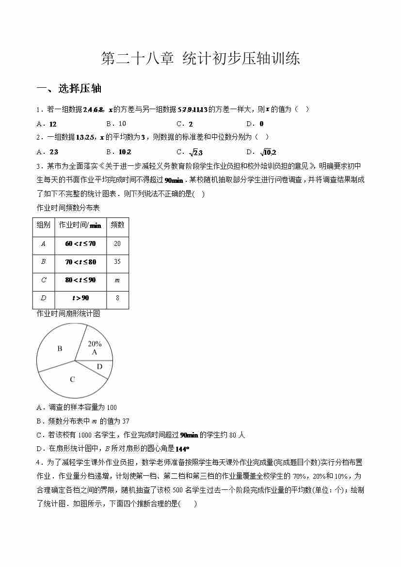 第二十八章 统计初步压轴训练(学生版)