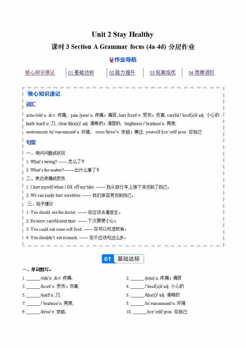 Unit 2 课时3 Section A Grammar focus 4a-4d(分层作业)(原卷版)