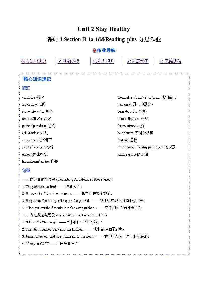Unit 2 课时4 Section B 1a-1d&Reading plus(分层作业)(解析版)