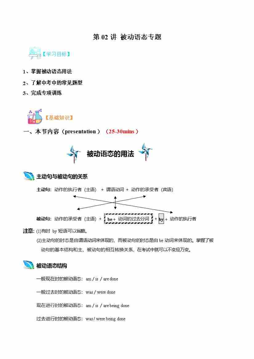 第02讲 被动语态专题(原卷版)-【寒假自学课】九年级英语寒假精品课(二模)(牛津上海版)