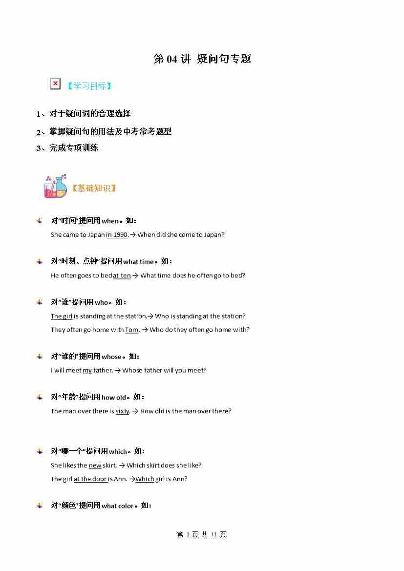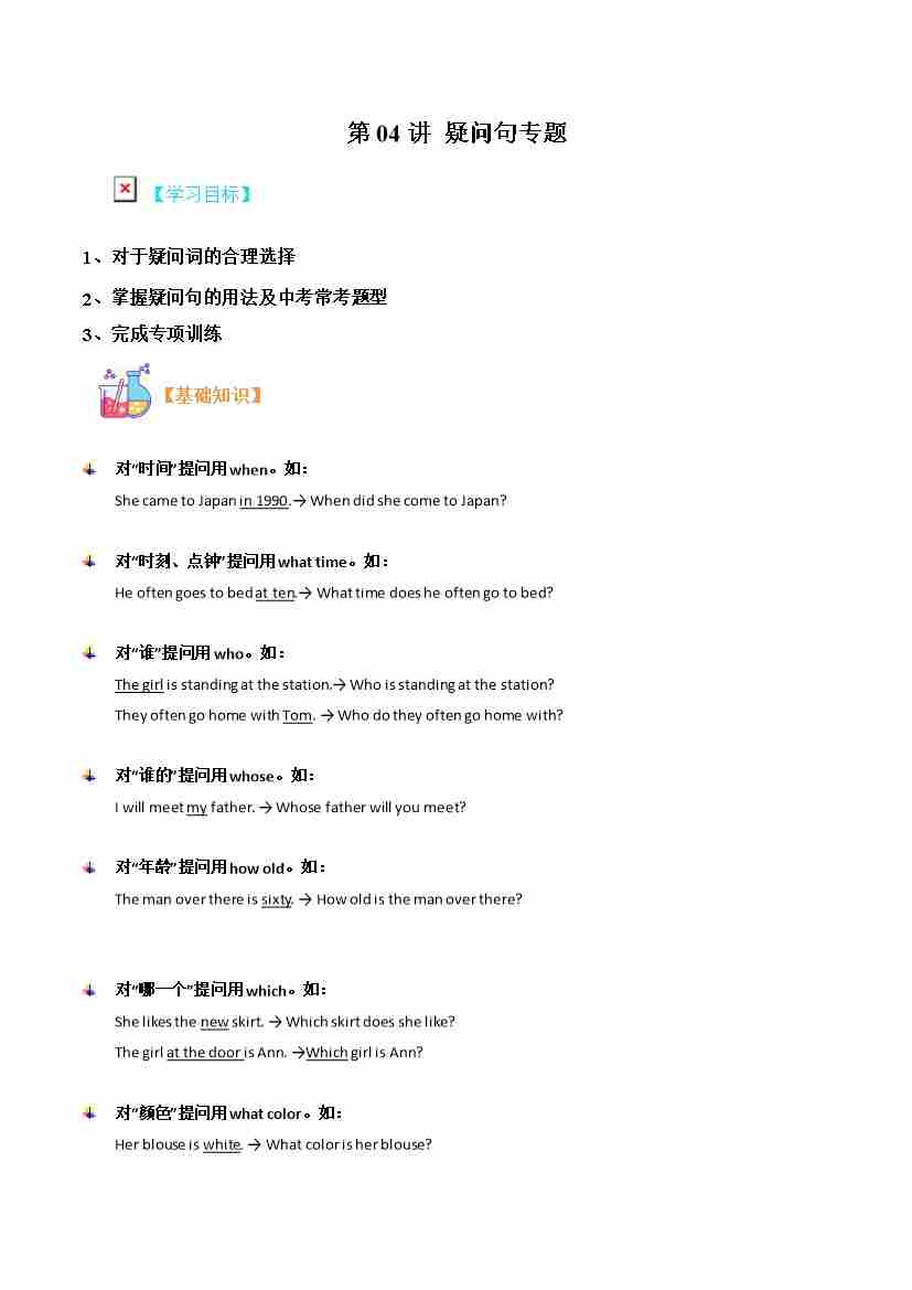 第04讲 疑问句专题(原卷版)-【寒假自学课】九年级英语寒假精品课(二模)(牛津上海版)