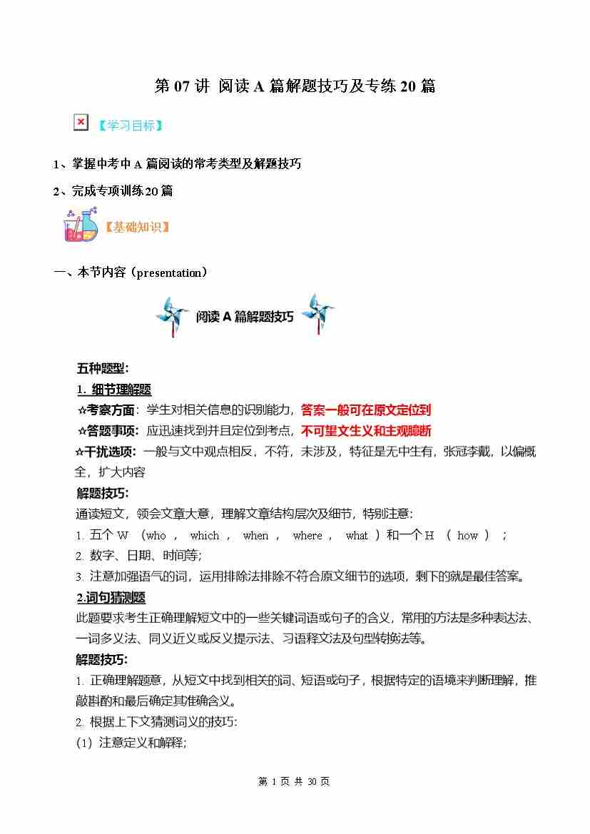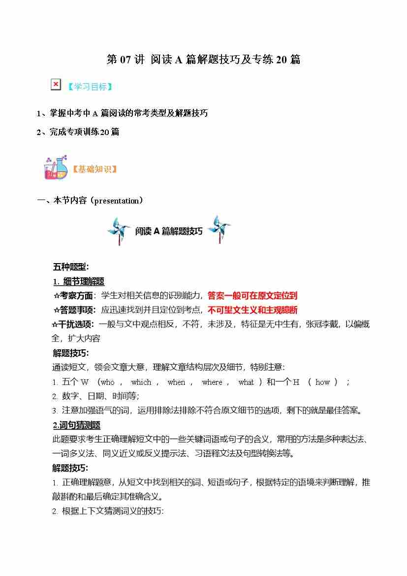 第07讲 阅读A篇解题技巧及专练20篇(解析版)-【寒假自学课】九年级英语寒假精品课(二模)(牛津上海版)