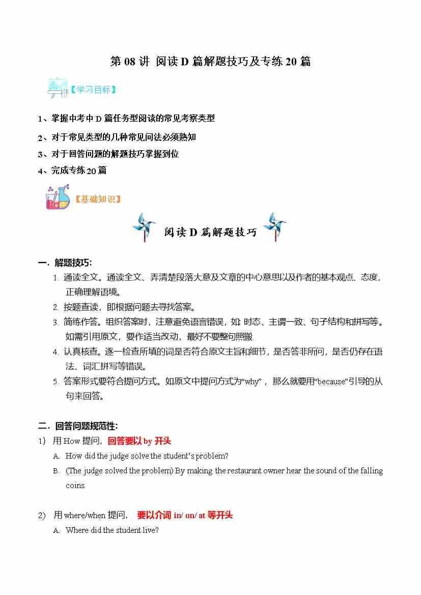 第08讲 阅读D篇解题技巧及专练20篇(原卷版)-【寒假自学课】九年级英语寒假精品课(二模)(牛津上海版)