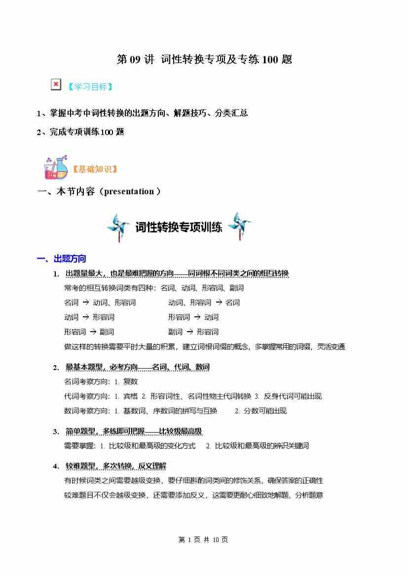 第09讲 词性转换专项及专练100题(解析版)-【寒假自学课】九年级英语寒假精品课(二模)(牛津上海版)
