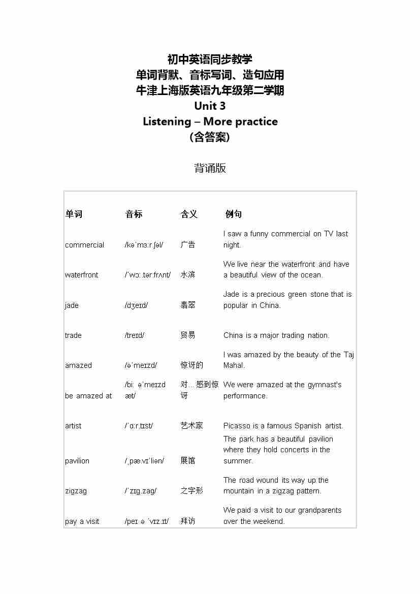 Unit 3 Listening ~More Practice单词背默音标写词造句应用同步练习