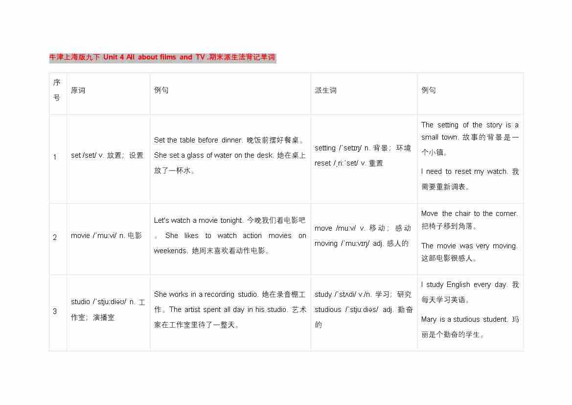 Unit 4 All about films and TV . 派生法背记单词