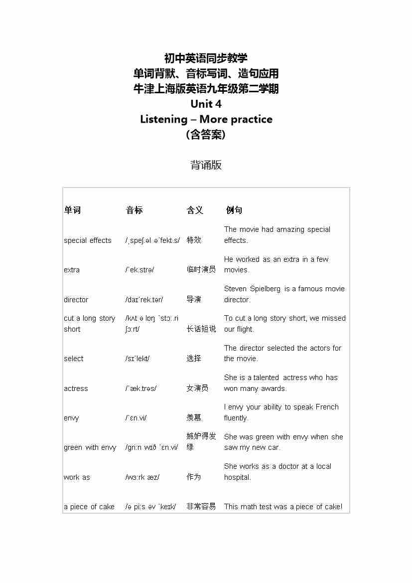 Unit 4 Listening - More 单词背默音标写词造句应用同步练习