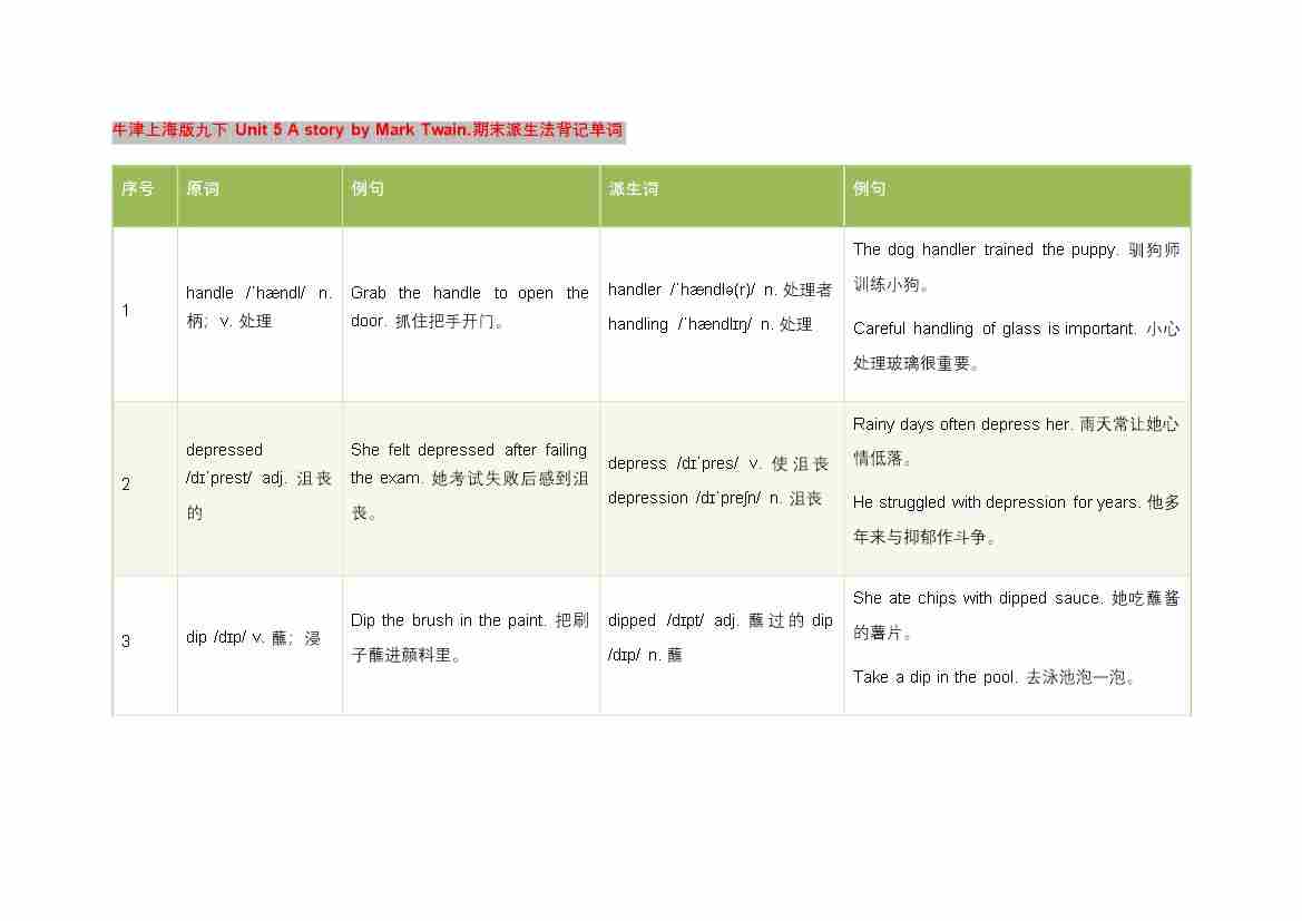 Unit 5 A story by Mark Twain. 派生法背记单词