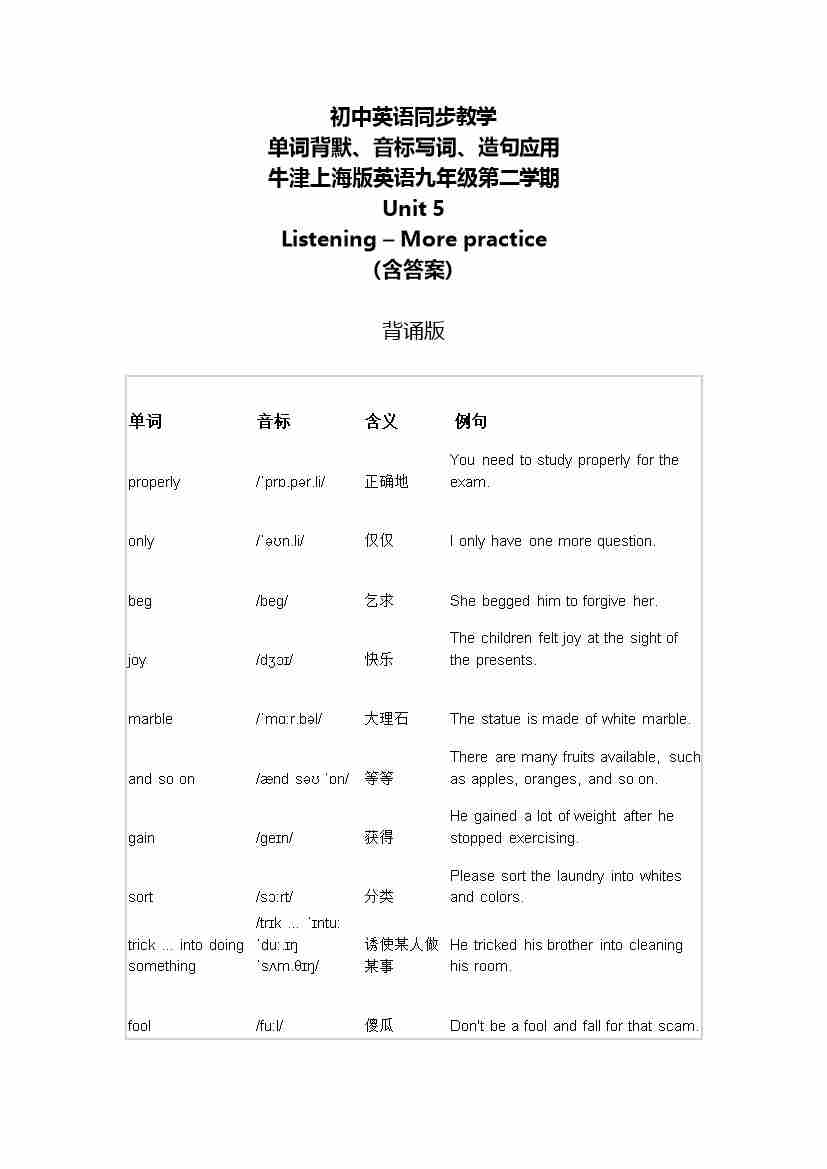 Unit 5 Listening ~More Practice 单词背默音标写词造句应用同步练习