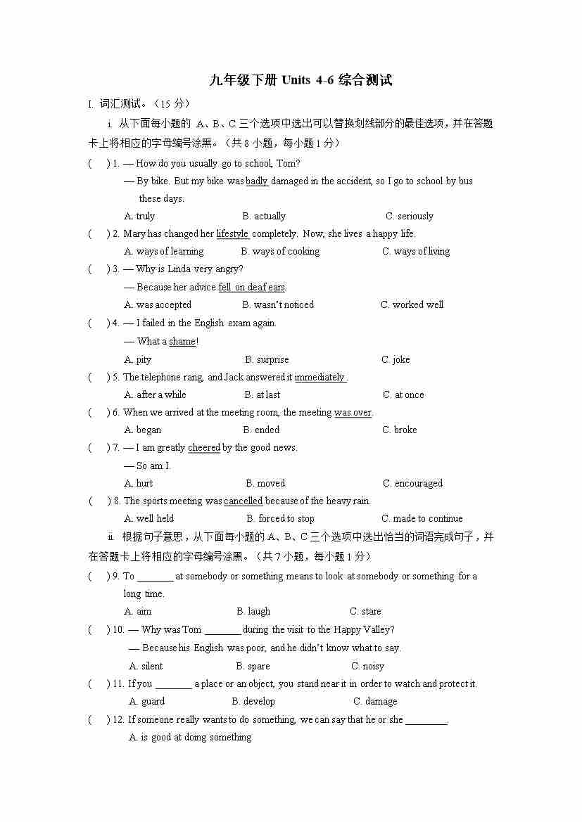Units 4-6 综合测试-上海牛津版九年级英语下册(含答案)