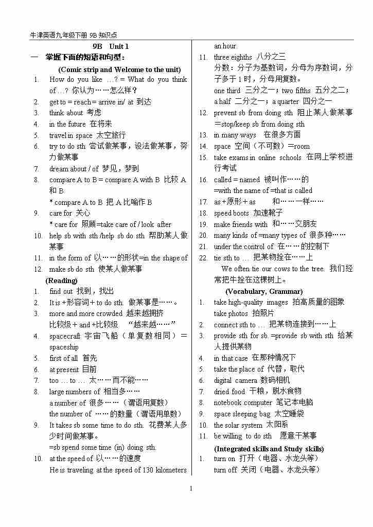 九年级下册英语沪教54知识总结