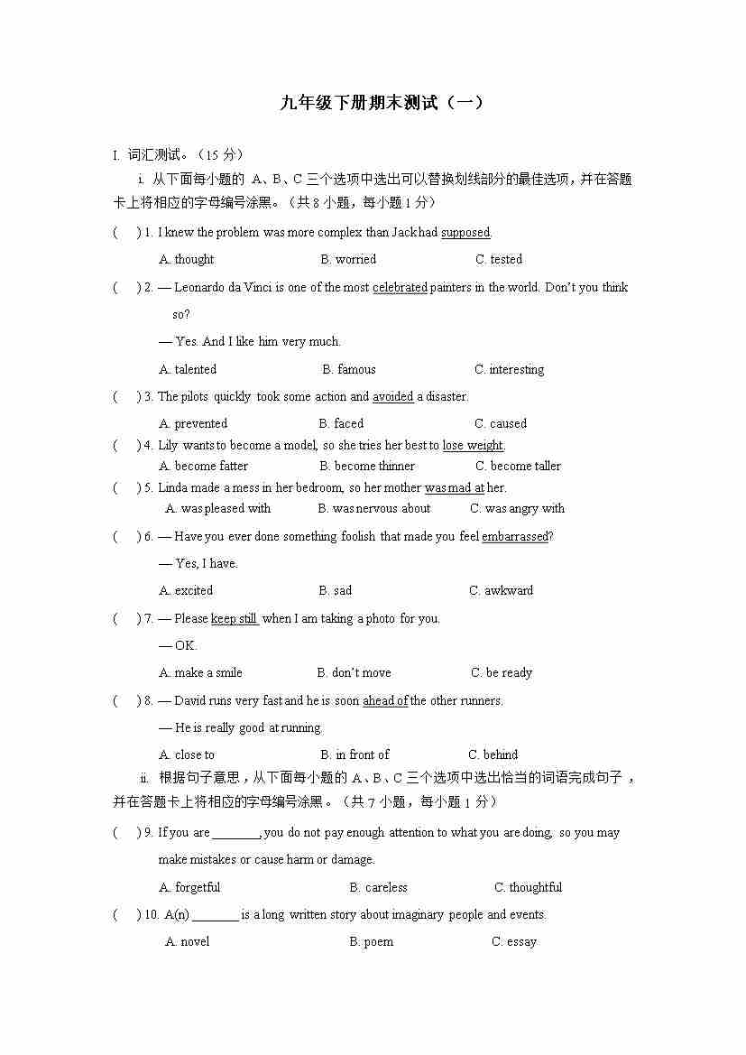 期末测试1上海牛津版九年级英语下册(含答案)