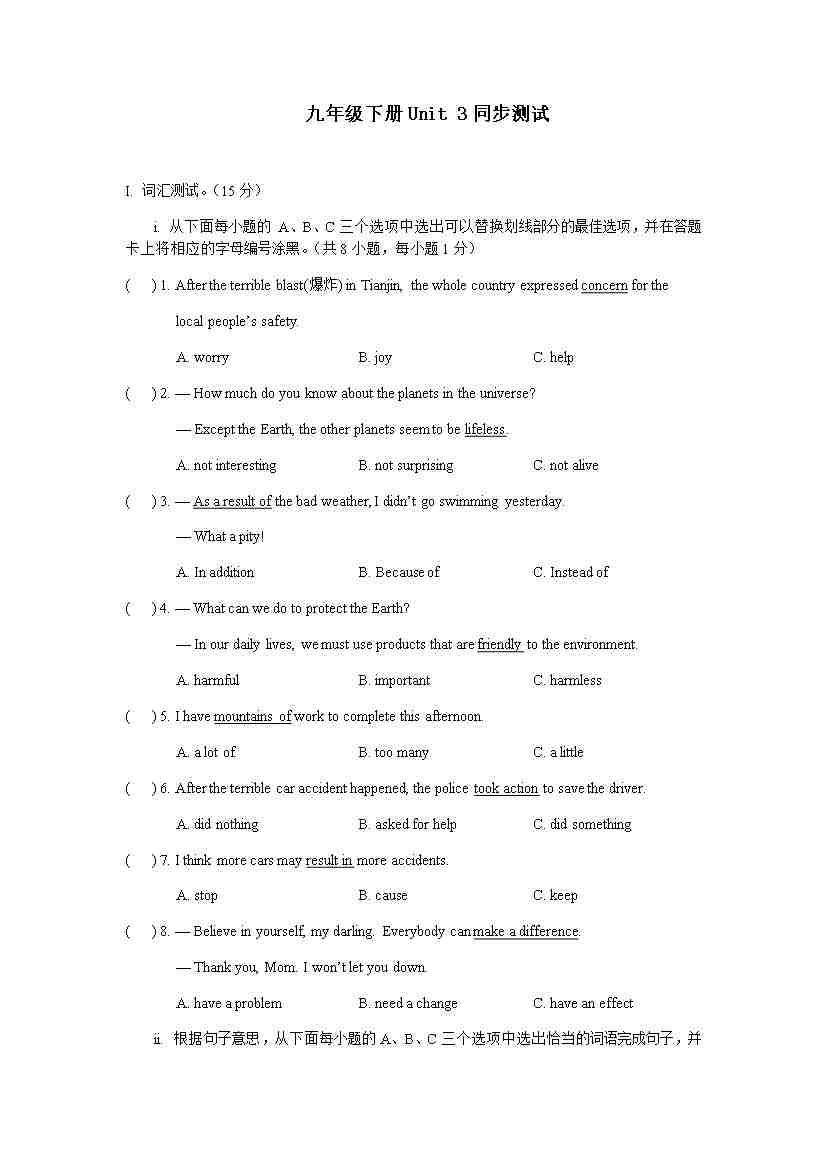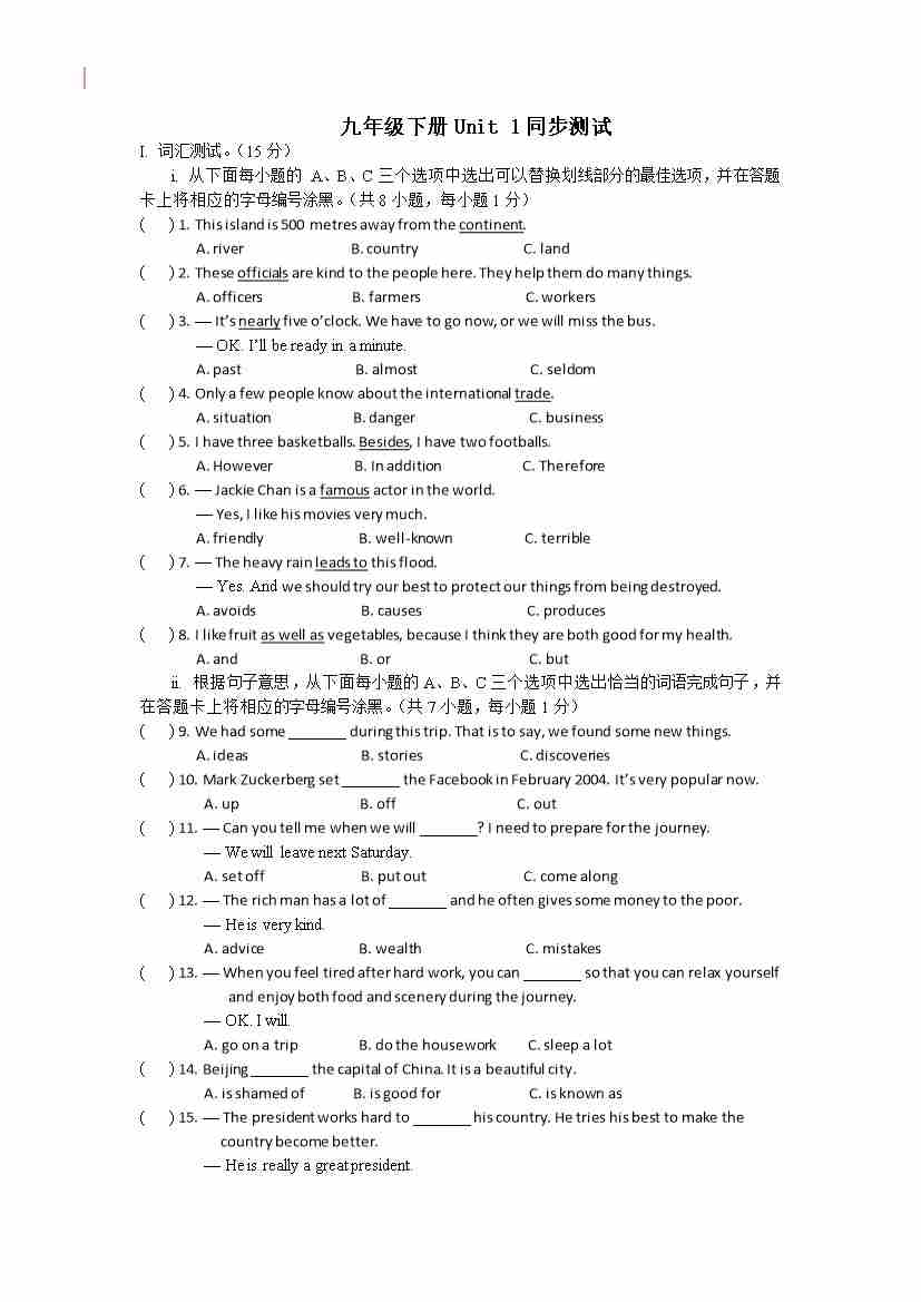 01 Unit 1 单元测试卷-上海牛津版九年级英语下册单元测试卷(含答案)