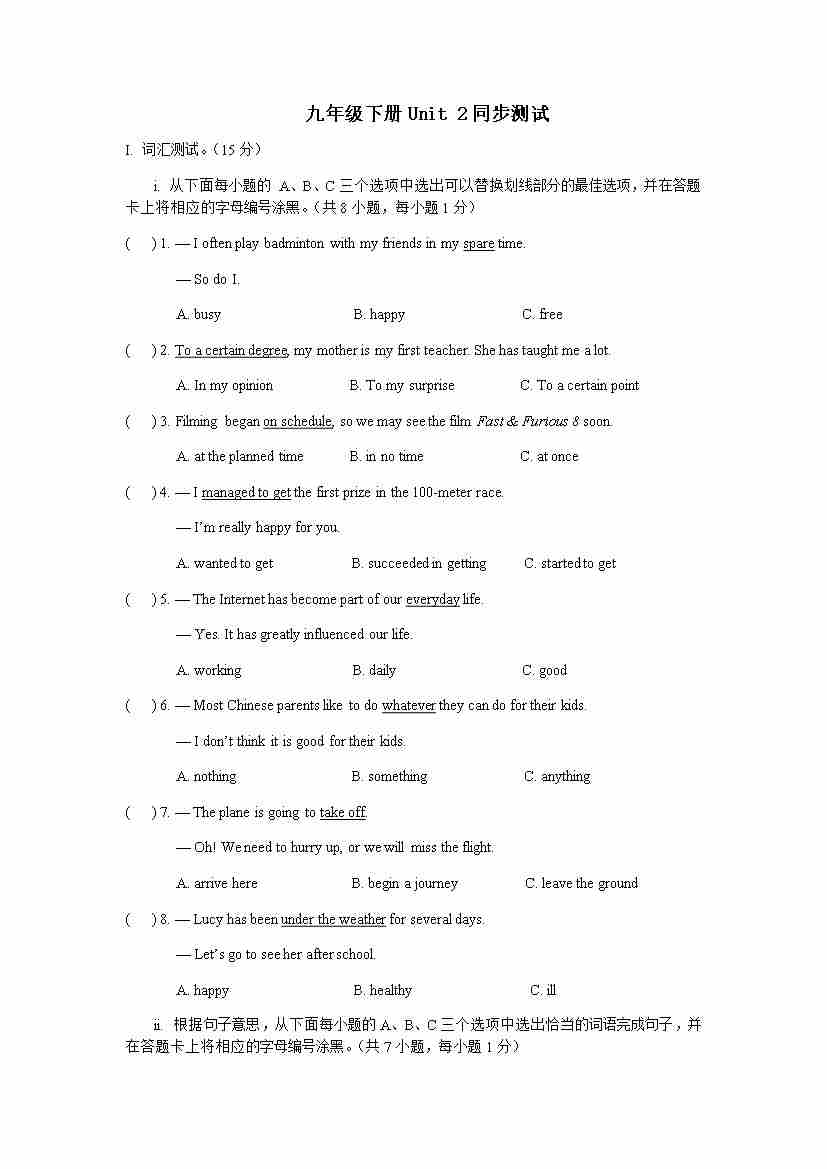02 Unit 2 单元测试卷-上海牛津版九年级英语下册单元测试卷(含答案)