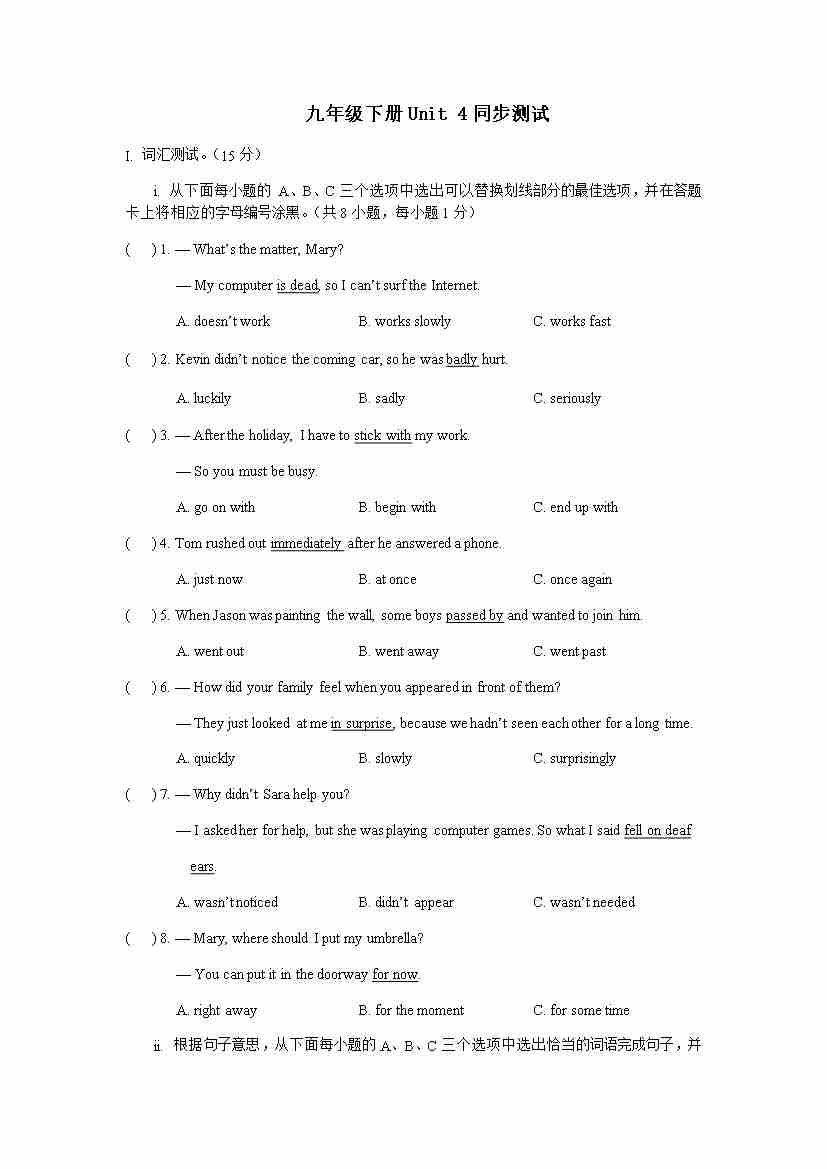 04 Unit 4 单元测试卷-上海牛津版九年级英语下册单元测试卷(含答案)