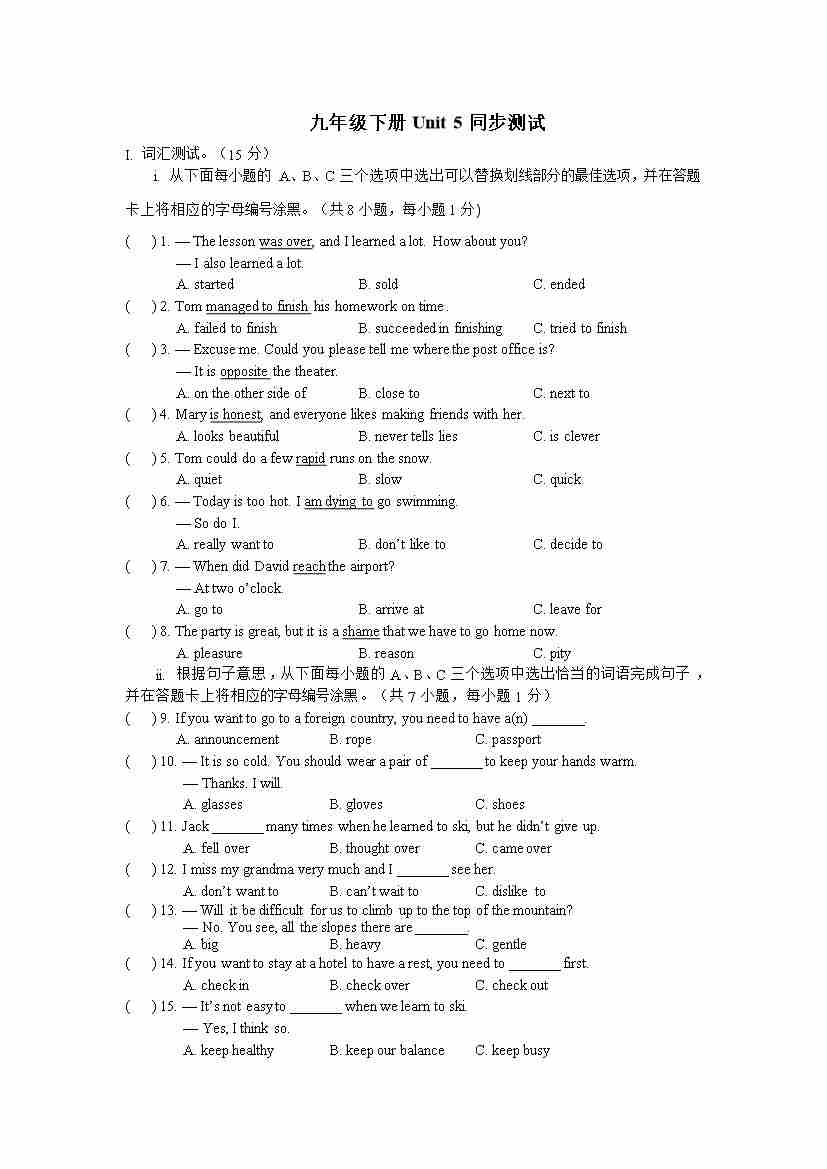05 Unit 5 单元测试卷-上海牛津版九年级英语下册单元测试卷(含答案)