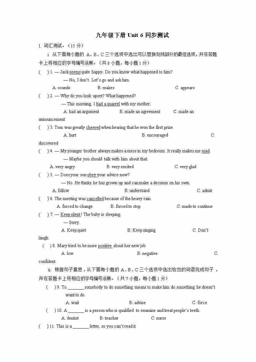 06 Unit 6 单元测试卷-上海牛津版九年级英语下册单元测试卷(含答案)