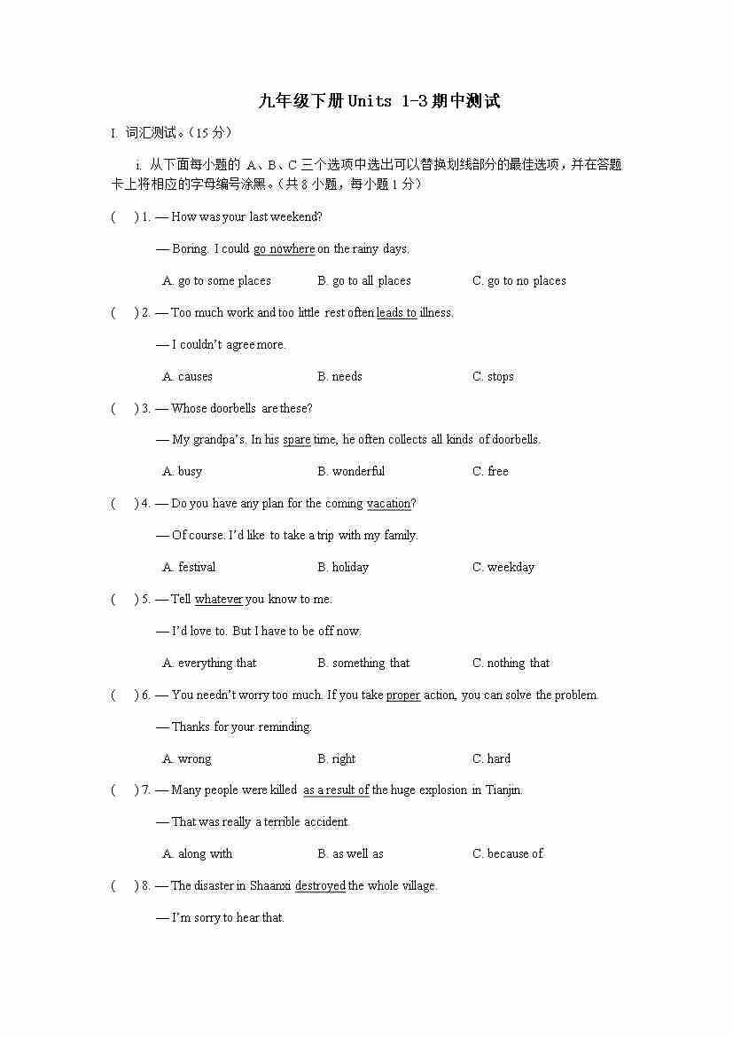 Units 1-3 期中测试卷-上海牛津版九年级英语下册(含答案)
