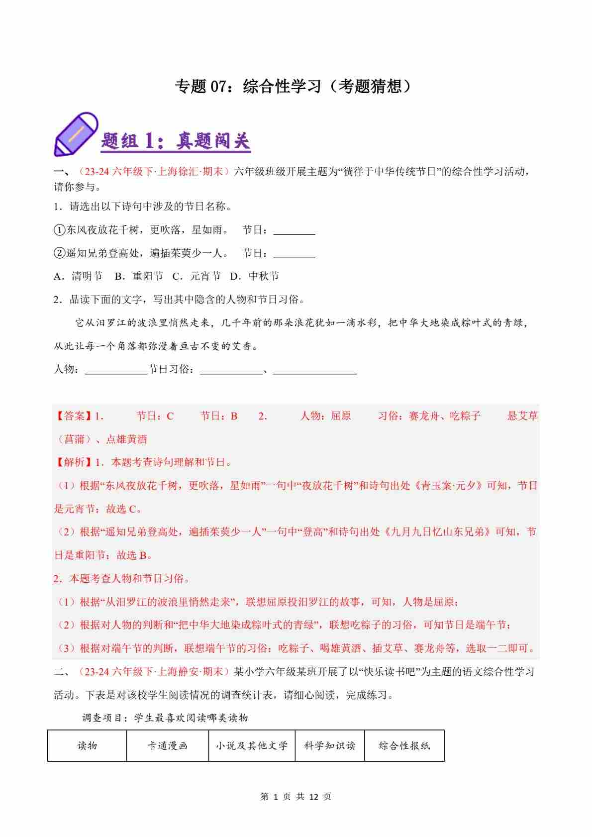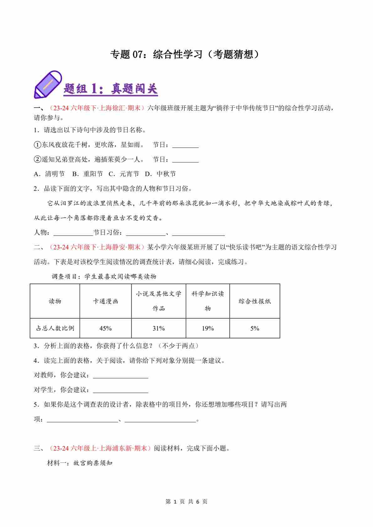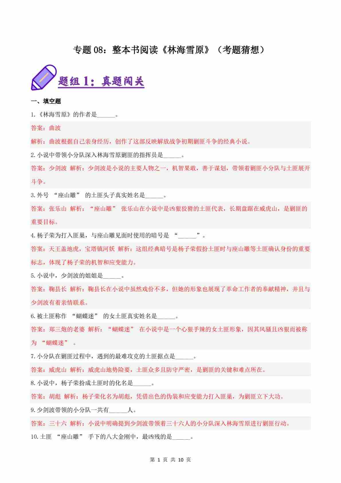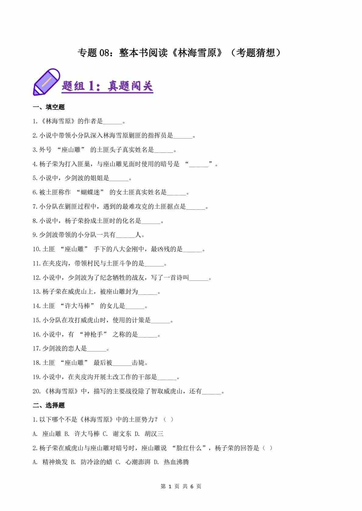 专题08:整本书阅读《林海雪原》(考题猜想)(原卷版)