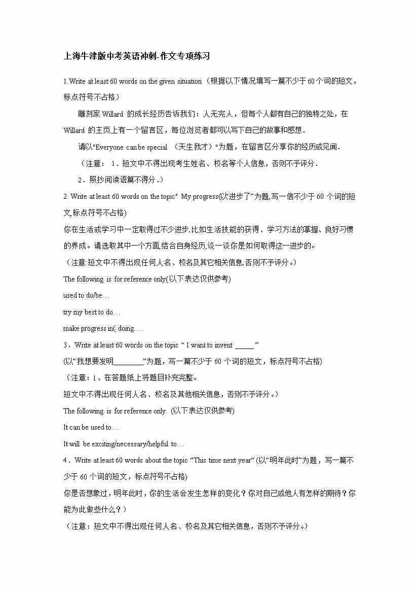 上海牛津版中考冲刺-作文专项练习(有答案)