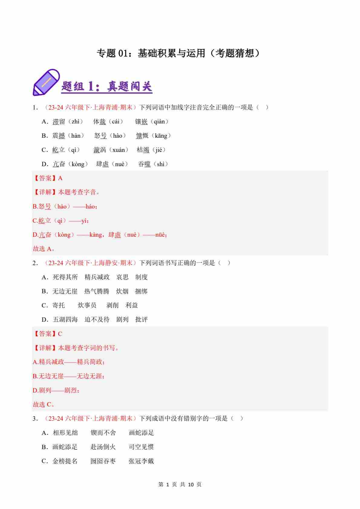 专题01:基础积累与运用(考题猜想)(解析版)