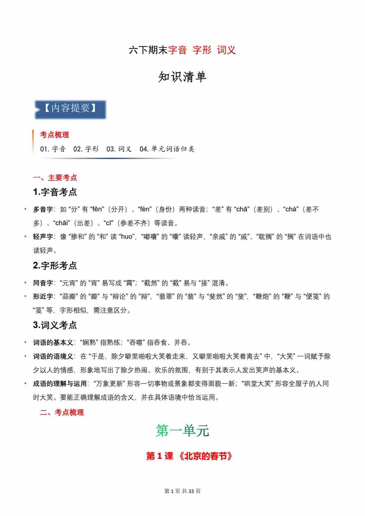专题01:字音、字形、词义(知识清单)