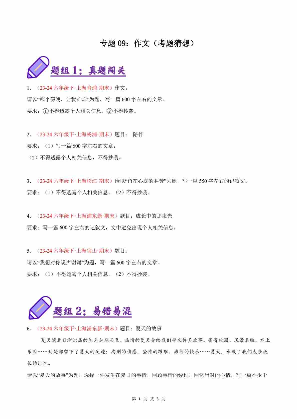 专题09:作文(考题猜想)(原卷版)