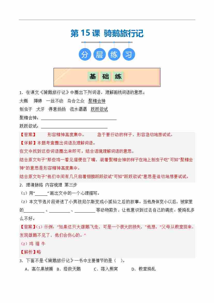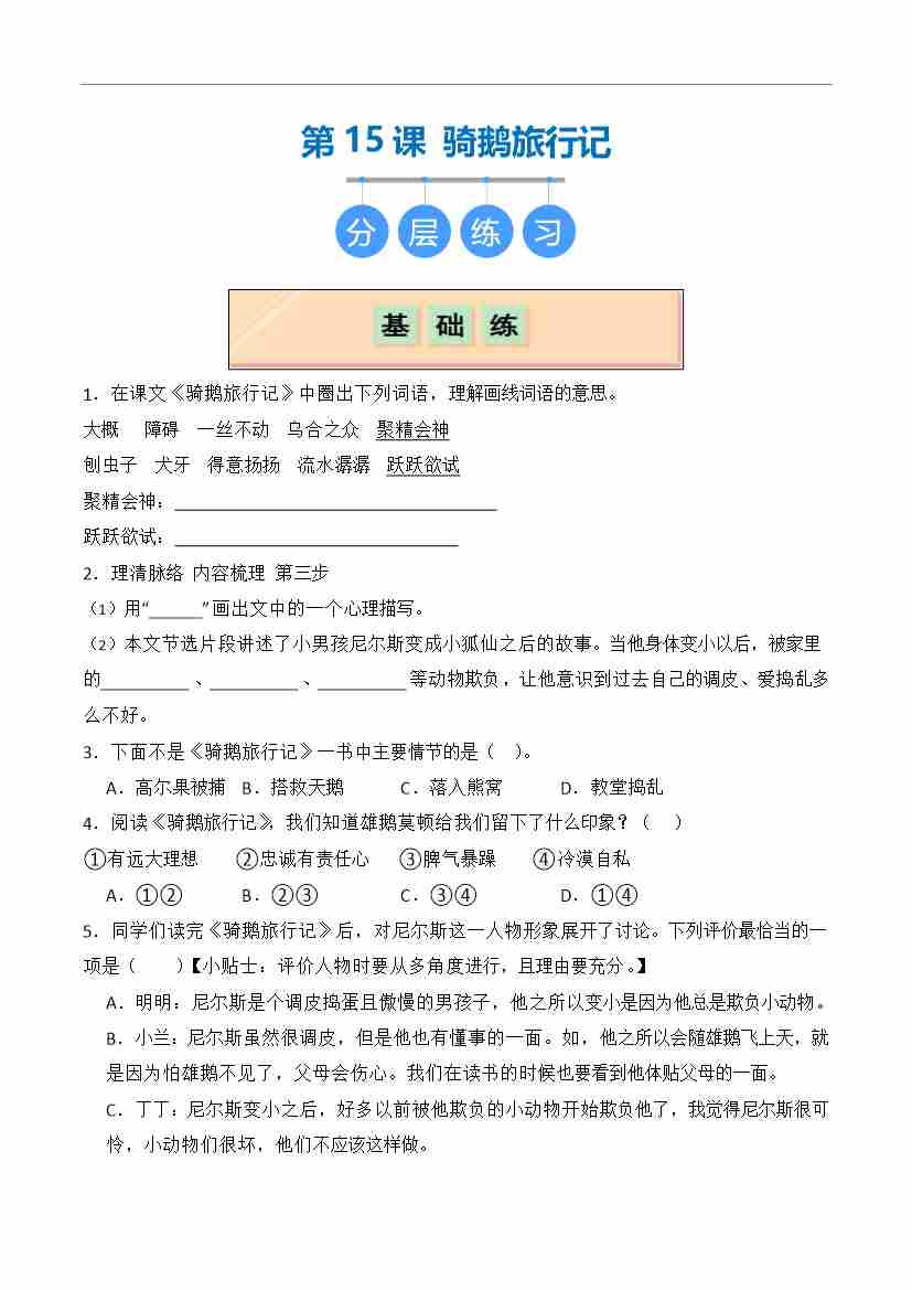 第15课《骑鹅旅行记》(分层练习)原卷版
